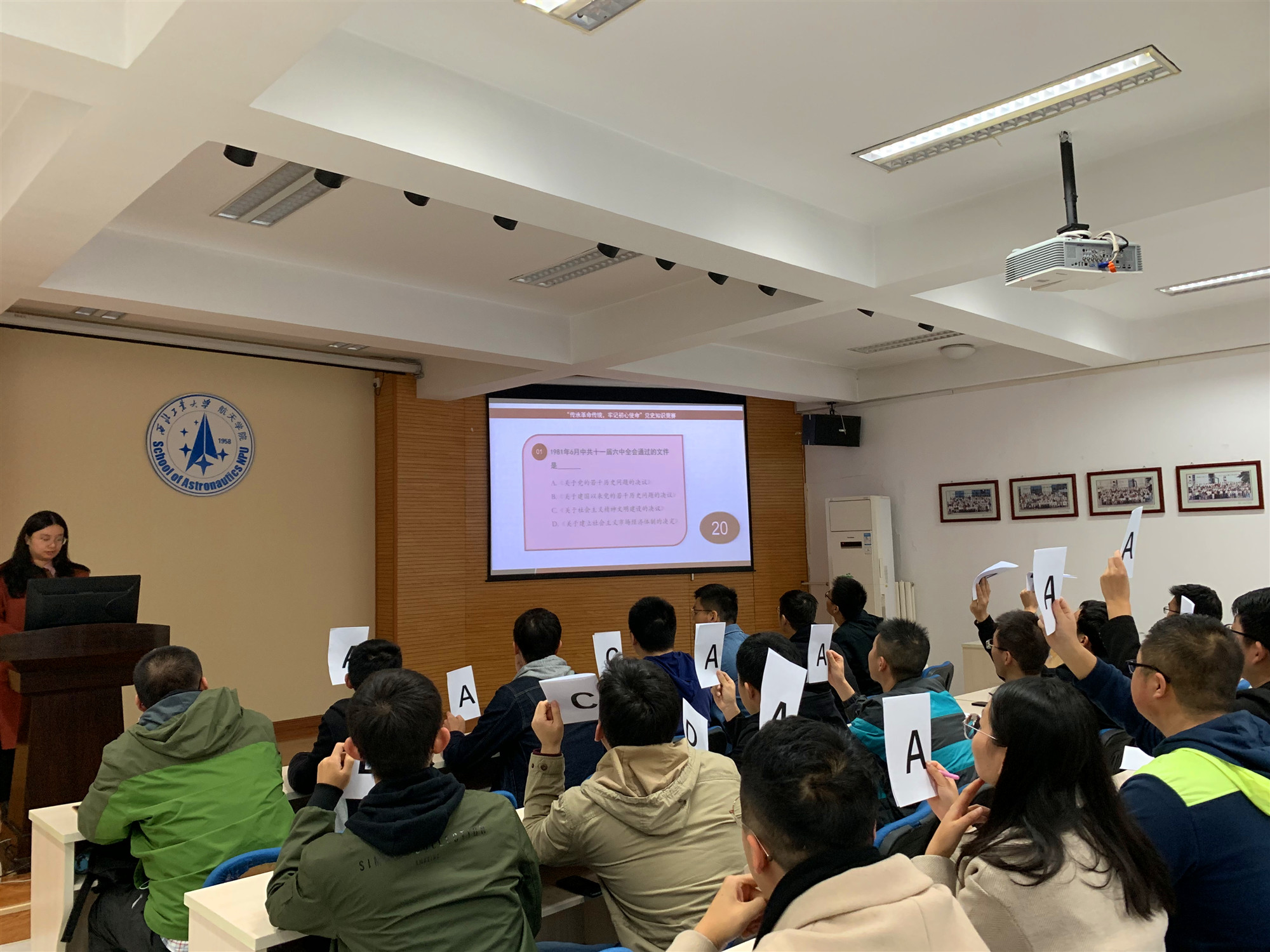 为进一步加强学生党员对党史知识的学习,结合学院学生党支部“不忘初心、牢记使命”系列主题教育要求,11月1日上午9点,由澳门网投十大信誉平台空天飞行技术研究所研究生第1党支部主办的“传承革命传统,牢记初心使命”党史知识竞赛在澳门网投十大信誉平台4号楼6楼多功能厅成功举办。