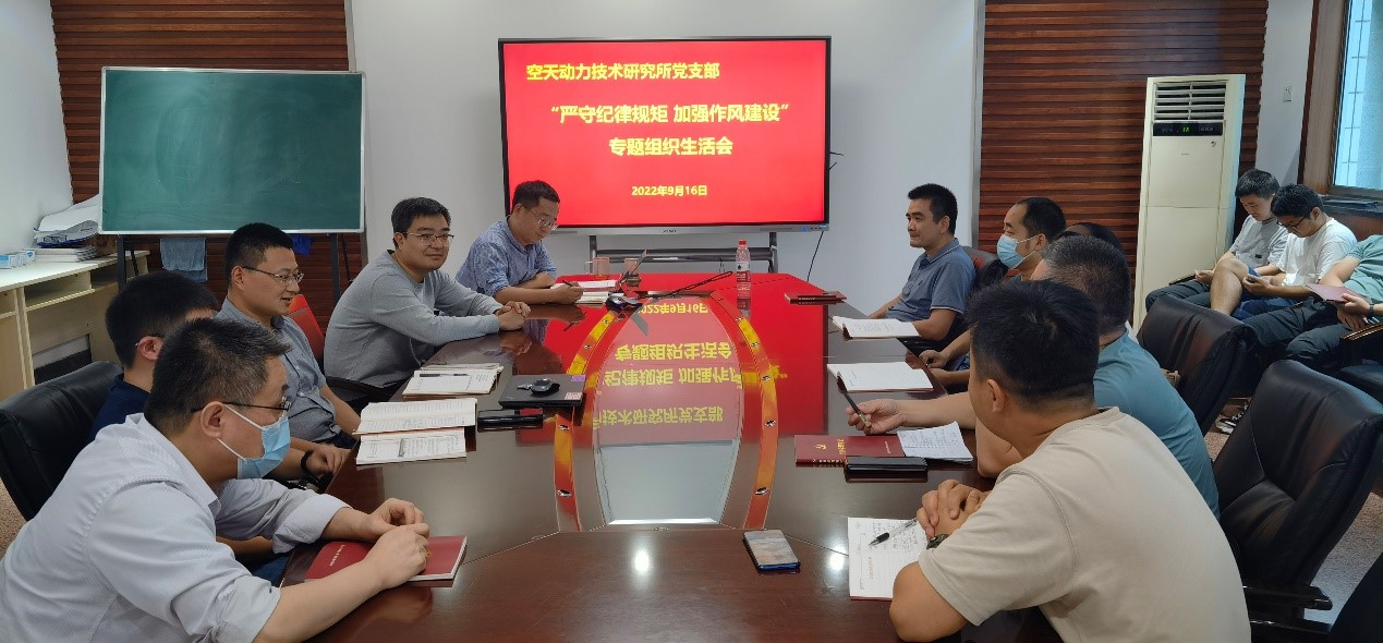 2022年9月16日,澳门网投十大信誉平台空天动力技术研究所党支部召开“严守纪律规矩 加强作风建设”专题组织生活会。会议由党支部书记吕翔同志主持,支部联系人澳门网投十大信誉平台宁昕副院长参会。
