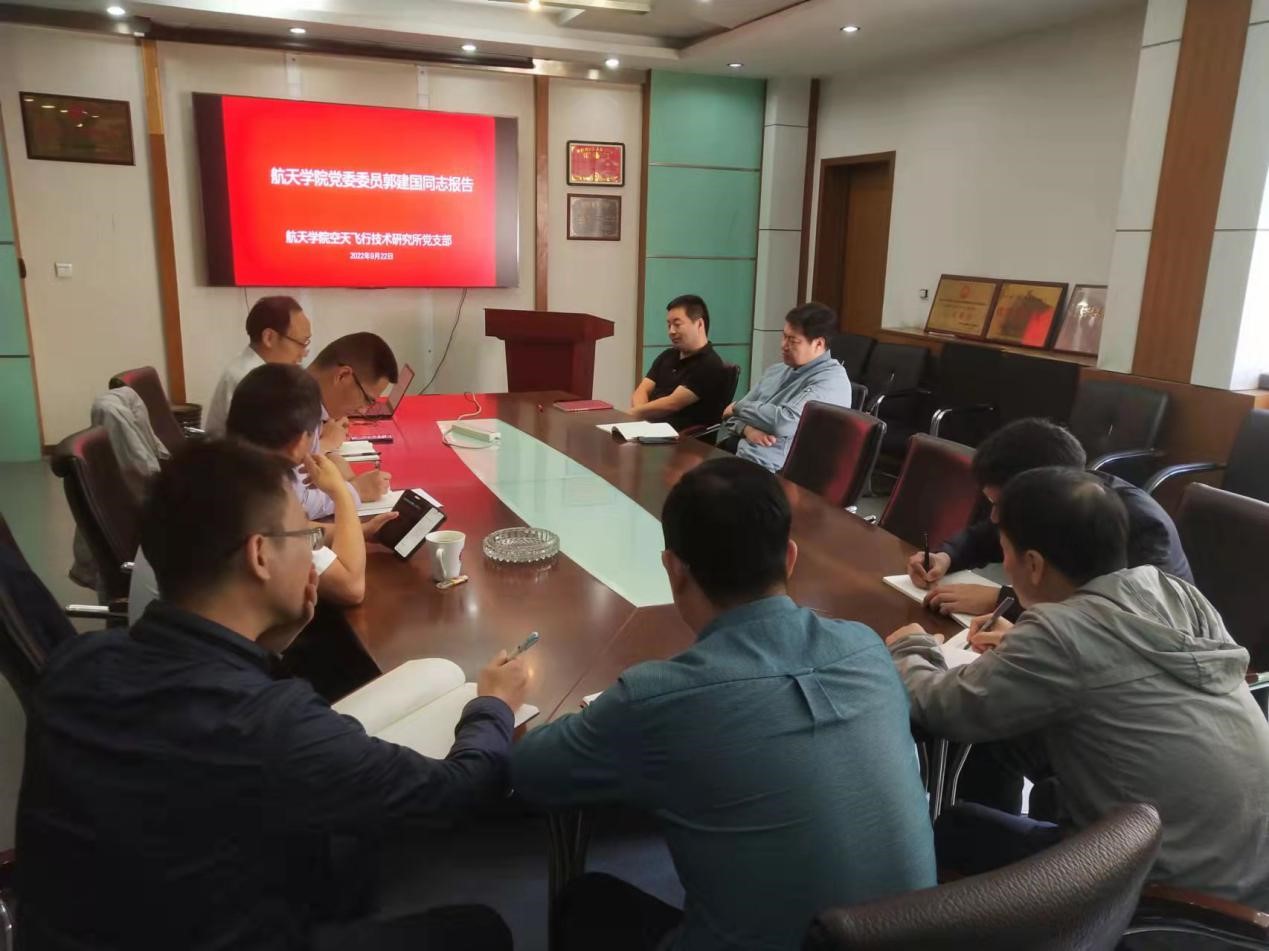 2022年9月22日,澳门网投十大信誉平台空天飞行技术研究所党支部召开了“严守纪律规矩 加强作风建设”专题组织生活会,教职工党员共18人参加了会议,会议由党支部书记刘磊同志主持,支部联系人、学院党委委员郭建国同志指导会议。