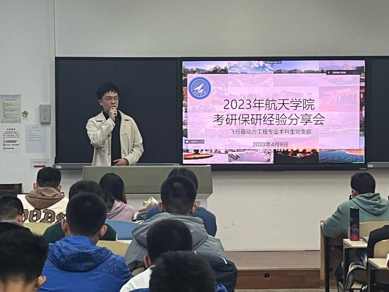2023年4月9日,为更好地引导本科生明晰考研或保研方向,了解考研、保研信息,掌握考研、保研技巧,有效发挥朋辈力量,飞行器动力工程专业本科生党支部联合澳门网投十大信誉平台学生会面向澳门网投十大信誉平台2020级学生开展考研保研经验分享会。本次分享会共邀请7位优秀的学长学姐分享他们的保研、考研经验和建议,120余名同学线上线下参会。分享会由赵子龙同学主持。