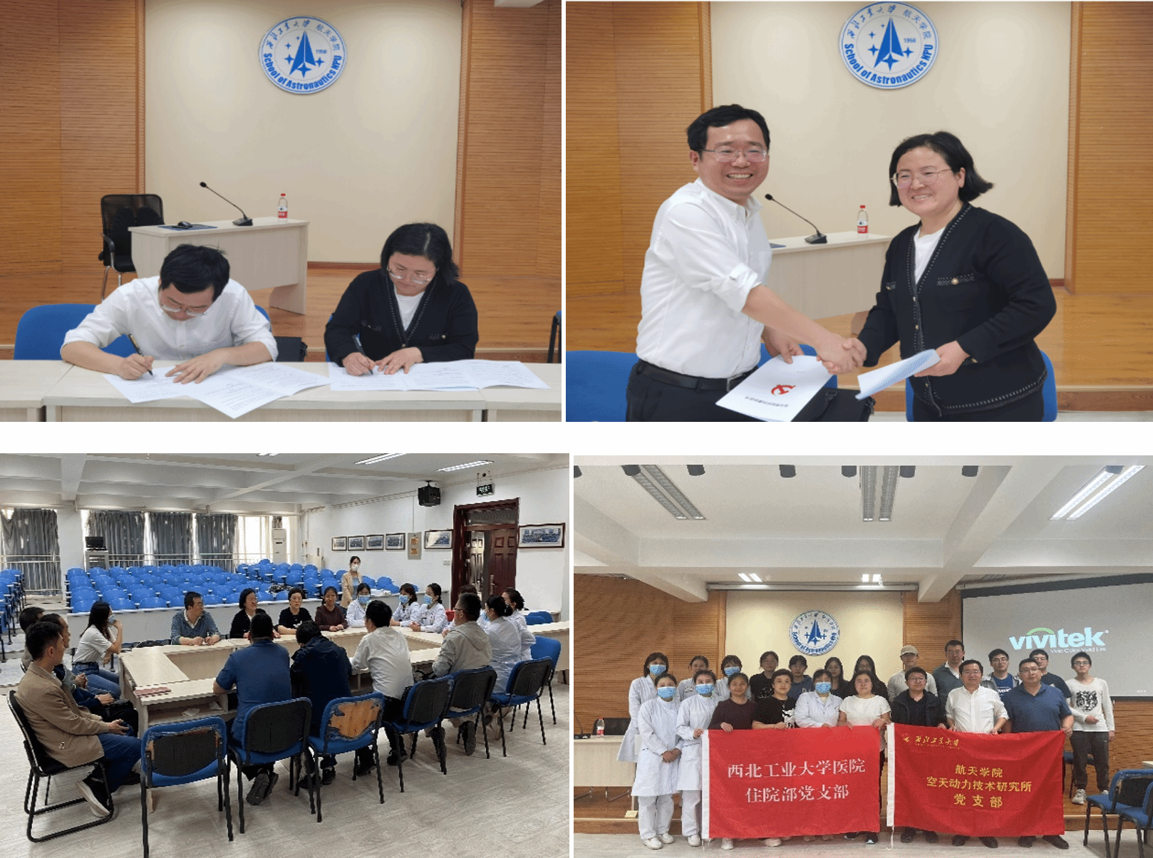 首先,澳门网投十大信誉平台空天动力技术研究所党支部书记吕翔和校医院住院部党支部书记贾晶签署支部结对共建协议书,双方支部党员围绕开展联合主题党日活动、创建支部特色品牌等方面进行了研讨交流。