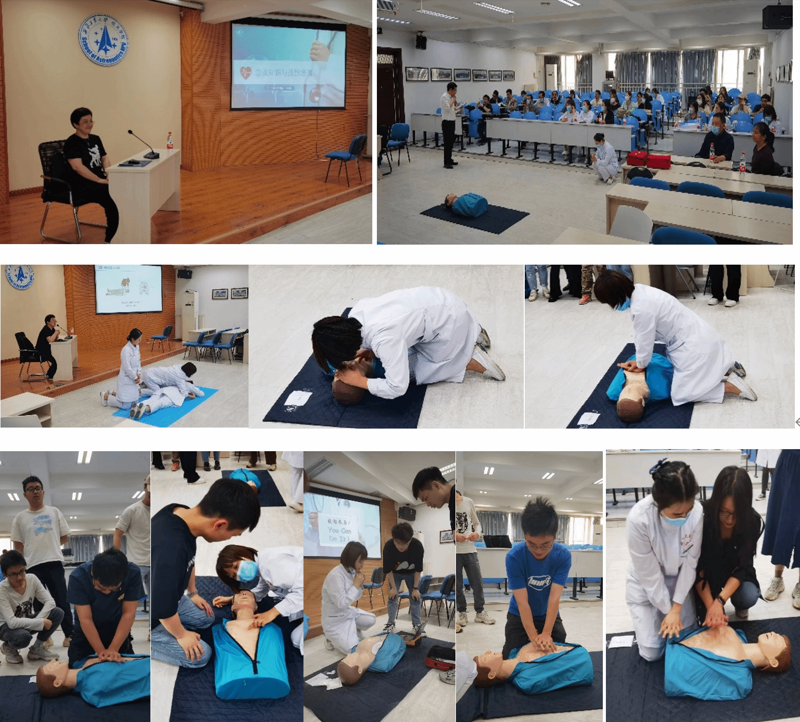 之后,校医院住院部党支部成员沙娟娟副主任医师为澳门网投十大信誉平台师生做了《急救知识与技能培训》报告,详细讲解了心肺复苏基本理论知识及实践操作要点、自动体外除颤器( AED) 的使用和海姆立克急救法。讲解过程中,校医院工作人员现场演示心肺复苏,AED 实践操作方法,使大家深入了解心肺复苏相关救护知识。同时,为了更加细致解答师生在急救操作过程中存在的问题,校医院汤燕医生、刘瑁医生、袁华护士、马沛瑶护士、王丽护士和董豪护士等手把手指导现场师生练习急救操作。通过本次培训,学院师生基本掌握了心跳呼吸骤停及气道异物梗阻的急救方法,提升了应急处置能力,取得了非常好的效果。