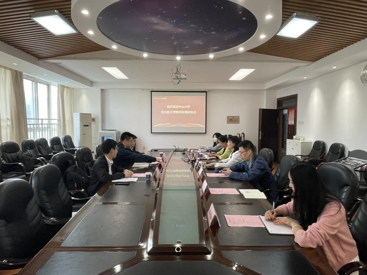 首先,黄越代表学院对中山大学航空澳门网投十大信誉平台一行的到访表示热烈欢迎,并围绕人才培养、队伍建设、科学研究、党建工作、合作交流等方面介绍了学院的整体概况和特色优势,韩冬就学生工作方面进行了补充。