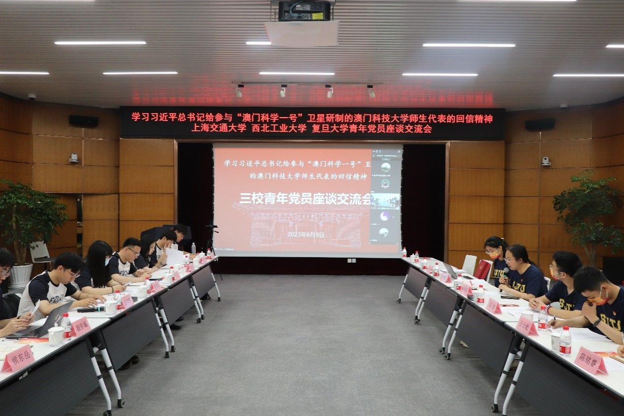 2023年6月9日,澳门网投十大信誉平台与复旦大学、上海交通大学赴酒泉主题教育实践研学队师生党员联合举办了学习习近平总书记给参与“澳门科学一号”卫星研制的澳门科技大学师生代表回信精神的交流座谈会。