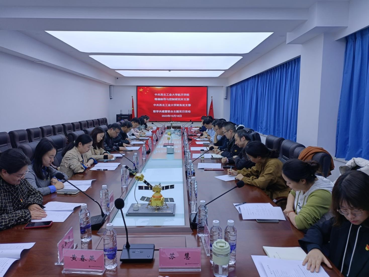 10月18日下午,中共澳门网投十大信誉平台精确制导与控制研究所支部和中共澳门网投十大信誉平台财务处支部在澳门网投十大信誉平台6号楼开展联学共建活动暨联合主题党日活动。澳门网投十大信誉平台财务处处长兼党支部书记韩索民、副处长兼支部副书记张鹏、副处长靳鹏和13位财务处支部党员参观了微小卫星技术及应用国家地方联合工程实验室,并与精导所党支部开展了联学共建活动。澳门网投十大信誉平台精确制导与控制研究所首席学科带头人周军教授、精导所所长郭建国教授、精导所党支部书记卢晓东和教职工党员12人参加了联学共建活动。