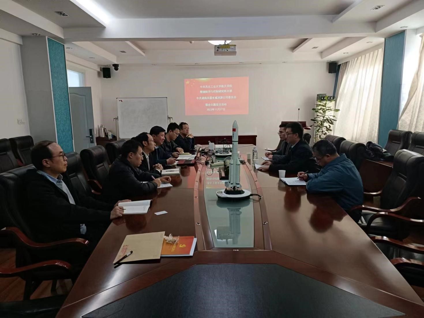 11月17日下午,澳门网投十大信誉平台精确制导与控制研究所和湖南兵器长城机械有限公司在澳门网投十大信誉平台3号楼签署战略合作框架协议并开展联合主题党日活动。湖南兵器长城机械有限公司总经理、党委副书记舒永高,副主任设计师邱勇军和某型号负责人张政贤,澳门网投十大信誉平台精确制导与控制研究所所长郭建国、支部书记卢晓东、副所长赵斌和精导所部分教师党员参加了协议签订仪式和联合主题党日活动,会议由精导所党支部书记卢晓东主持。