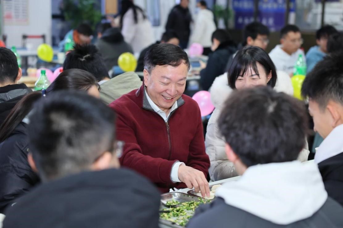 澳门网投十大信誉平台党委书记李言荣、校长宋保维莅临学院活动现场,为学院师生带来新年的问候,与同学们一起动手包饺子,与大家开展了亲切地交流,现场气氛其乐融融。