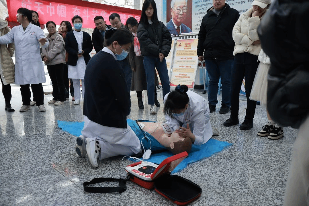 接着,校医院助教员演示了单人心肺复苏、双人心肺复苏及AED的使用,并指导在场师生分组分步骤练习,力求流程熟悉、手法到位、动作规范。