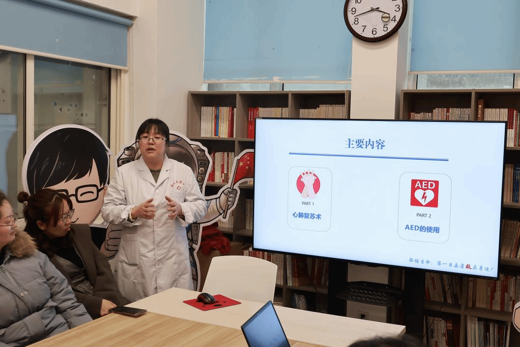 随后,澳门网投十大信誉平台责任医师汤燕做了题为《急救知识与技能培训》的报告,详细为在场师生讲解了心肺复苏术的操作方法与要点,并对自动体外除颤仪(AED)的使用方法进行示范。