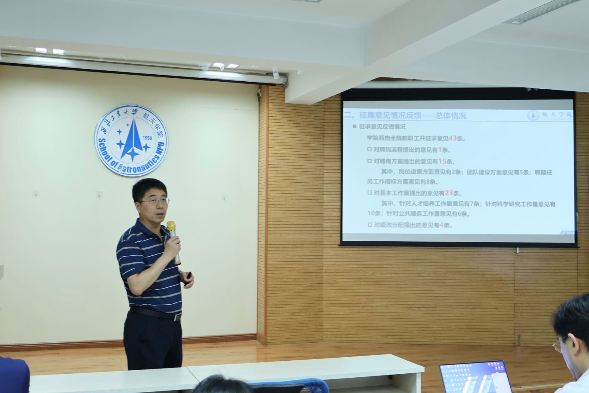 随后,院长黄攀峰详细阐述了岗位聘任方案的修订情况。他强调,学校全面启动以目标责任制为核心的新一轮评价改革,学院要通过不断优化完善目标责任制指标体系,汇聚力量、真抓实干,以核心关键指标牵引考核评价和资源配置,激发学院办学活力,提升核心竞争力,大力支撑学院内涵式高质量发展,为学校“双一流”建设和航天强国贡献新的力量!