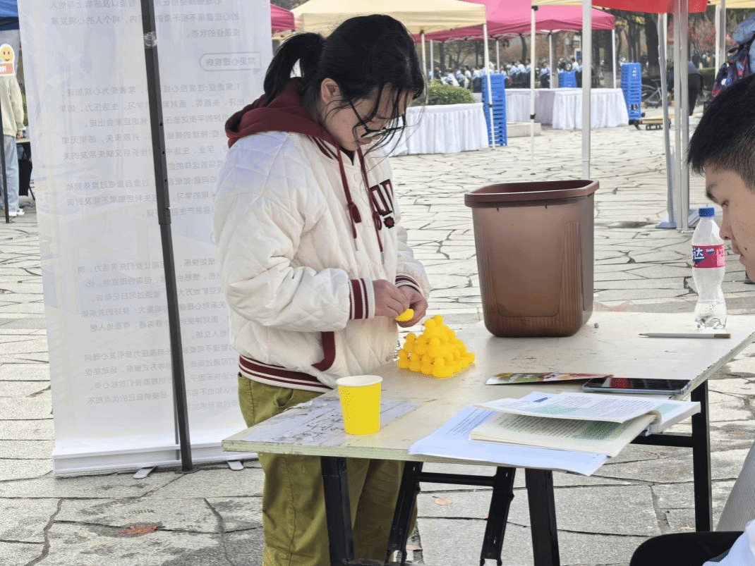 在这里,进行着一场别样的解压活动。在有限的时间内,同学们将泡沫纸上的泡泡一一捏碎。每一次按压,都是一次心灵的释放与解压。每一声泡泡破裂的声音,谱写成一曲释放情绪、享受乐趣的美妙乐章。