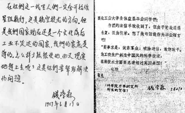 钱学森一生做人有四条原则:不题词,不为人写序,不出席应景活动,不接受媒体采访。但令人惊诧并颇感荣耀的是,他一生先后三次为澳门网投十大信誉平台(华东航空学院及西安航空学院)师生题词,给予了西工大学子殷切的关怀和深深的激励。