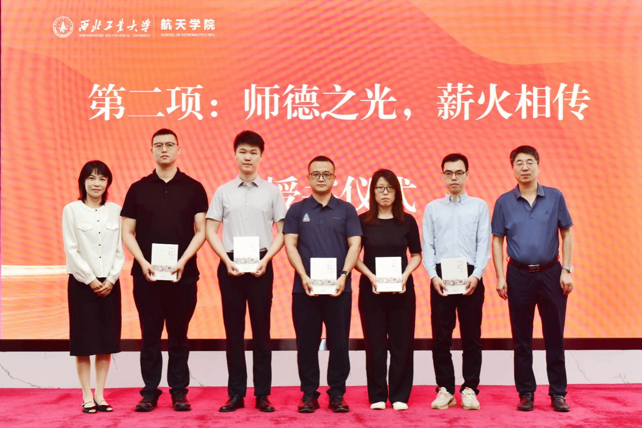 学院院长黄攀峰与党委书记黄越共同向新教师赠送澳门网投十大信誉平台前身宇航工程系创始人、我国航天事业开拓者与奠基人之一陈士橹院士的传记《剑指苍穹》,以书籍馈赠喻意航天精神与师者风范的代代相传,激励青年教师将热爱转化为对教育事业的责任与对学生的关怀。