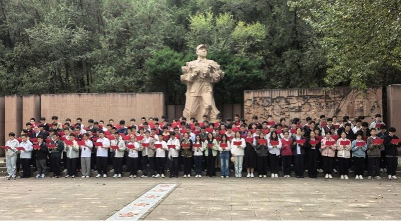 一座静谧的广场上,矗立着红色前辈张思德的雕像。同学们在雕前齐声朗诵了《为人民服务》。为人民服务的理念是共产党人的初心,更是当代青年的理想。重温经典,同学们从榜样身上汲取精神力量,感受字里行间的使命担当。