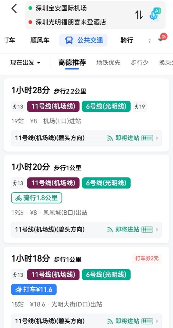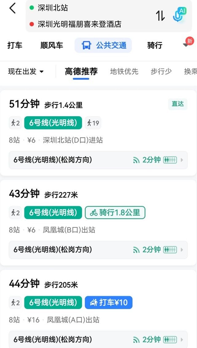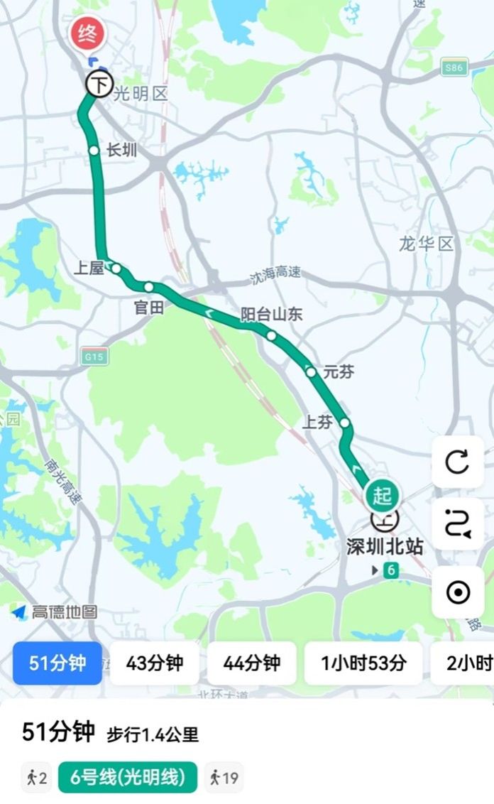 (2)高铁:深圳北站--光明区福朋喜来登酒店