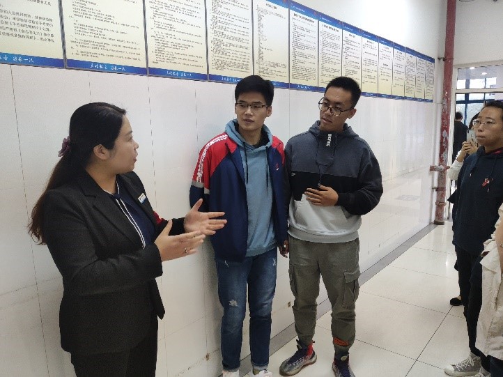 千里之行,始于足下。为了让同学们更加明确光盘行动对于现实的重要意义,在学院的帮助下,10月9日晚,班级一行18人前往星天苑北餐厅进行餐后粮食处理情况调研。在餐厅门口集合完毕后,学生代表们前往餐厅二楼,在北餐厅的王经理的热情协助下,学生们依次参观了餐具回收点,后厨以及面食窗口,并在王经理介绍下,对剩余饭菜的回收流程及其科学再利用有了清晰的了解。