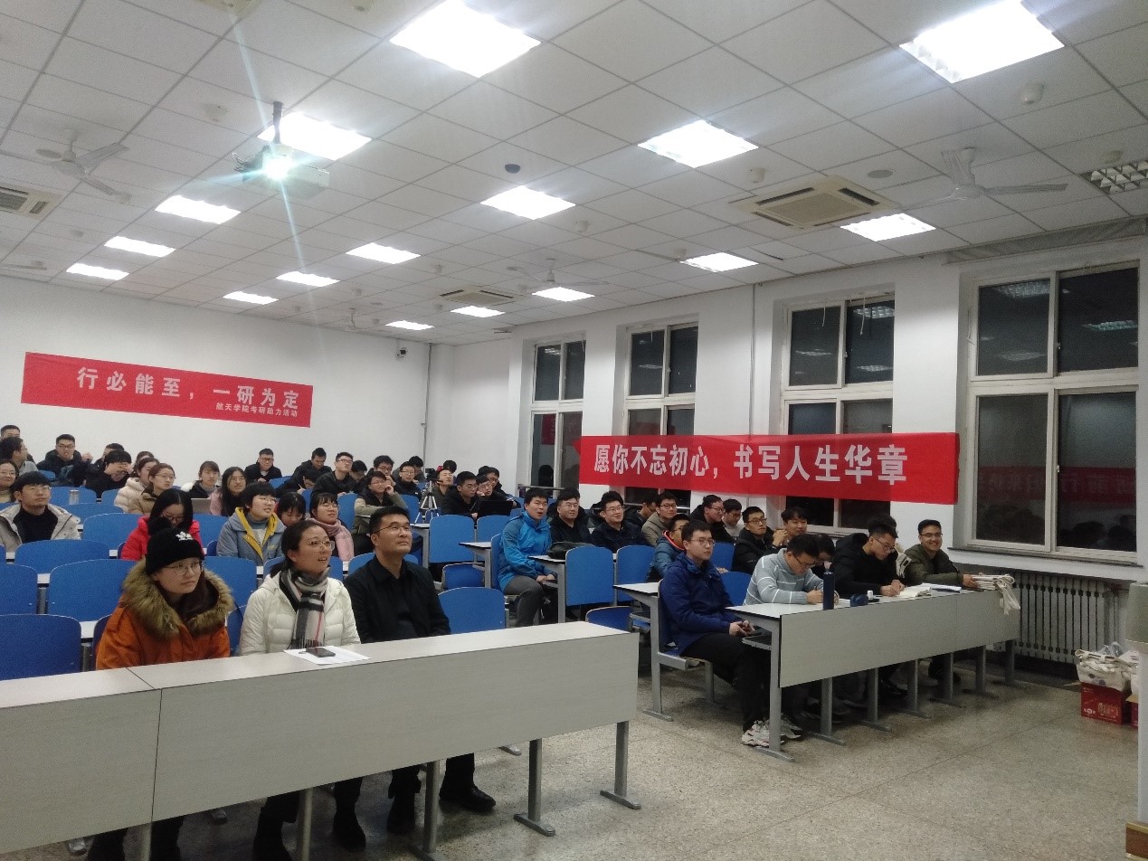2021年研究生入学考试即将来临,为向考研同学送去关心与祝福,2020年12月15日19:00,在长安校区教学东楼D座303教室,澳门网投十大信誉平台飞行器设计与工程专业本科生第1党支部、飞行器设计与工程专业本科生第2党支部、探测制导与控制技术专业本科生党支部、飞行器动力工程专业本科生党支部、航空航天工程专业本科生党支部联合,共同开展“行必能至,一研为定” 暖心助力考研活动。澳门网投十大信誉平台党委副书记王强、2017级辅导员许锦、各本科生党支部党员以及全体考研同学参加了此次活动。活动由探测制导与控制技术专业本科生党支部书记王远卓主持。