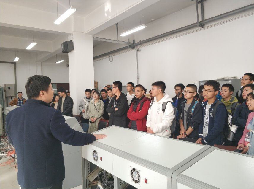 首先,澳门网投十大信誉平台老师郭宗易详细介绍了精导所的历史,带同学们参观了高低温湿环境实验室,播放了关于飞行器的各类影像资料:模拟在18.4g离心左右下测试卫星的视频、高倾角导弹发射成功的慢动作视频、应用前景十分广阔的灭火弹视频……使同学们对航天有了进一步的认识,增加了自豪感与使命感。