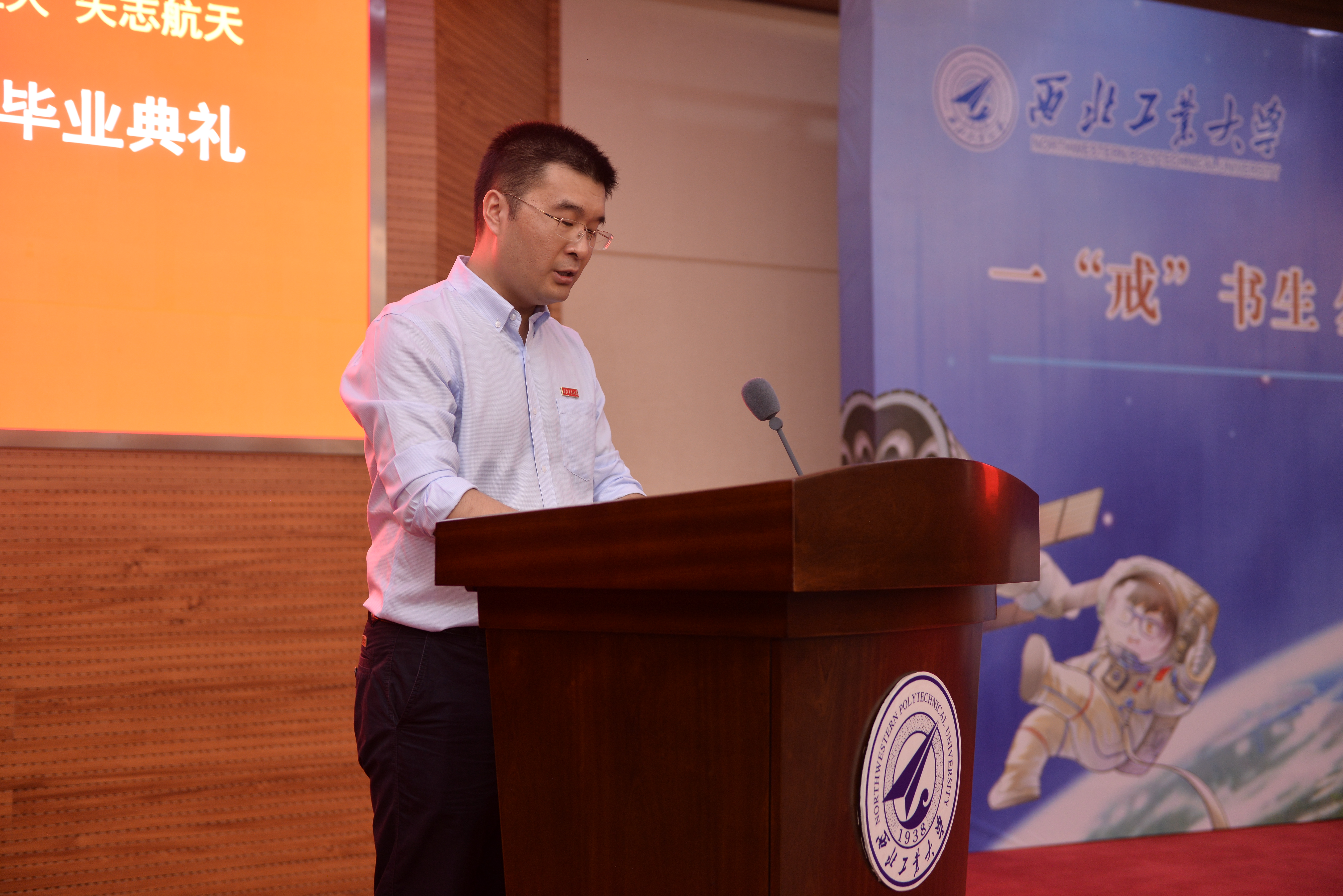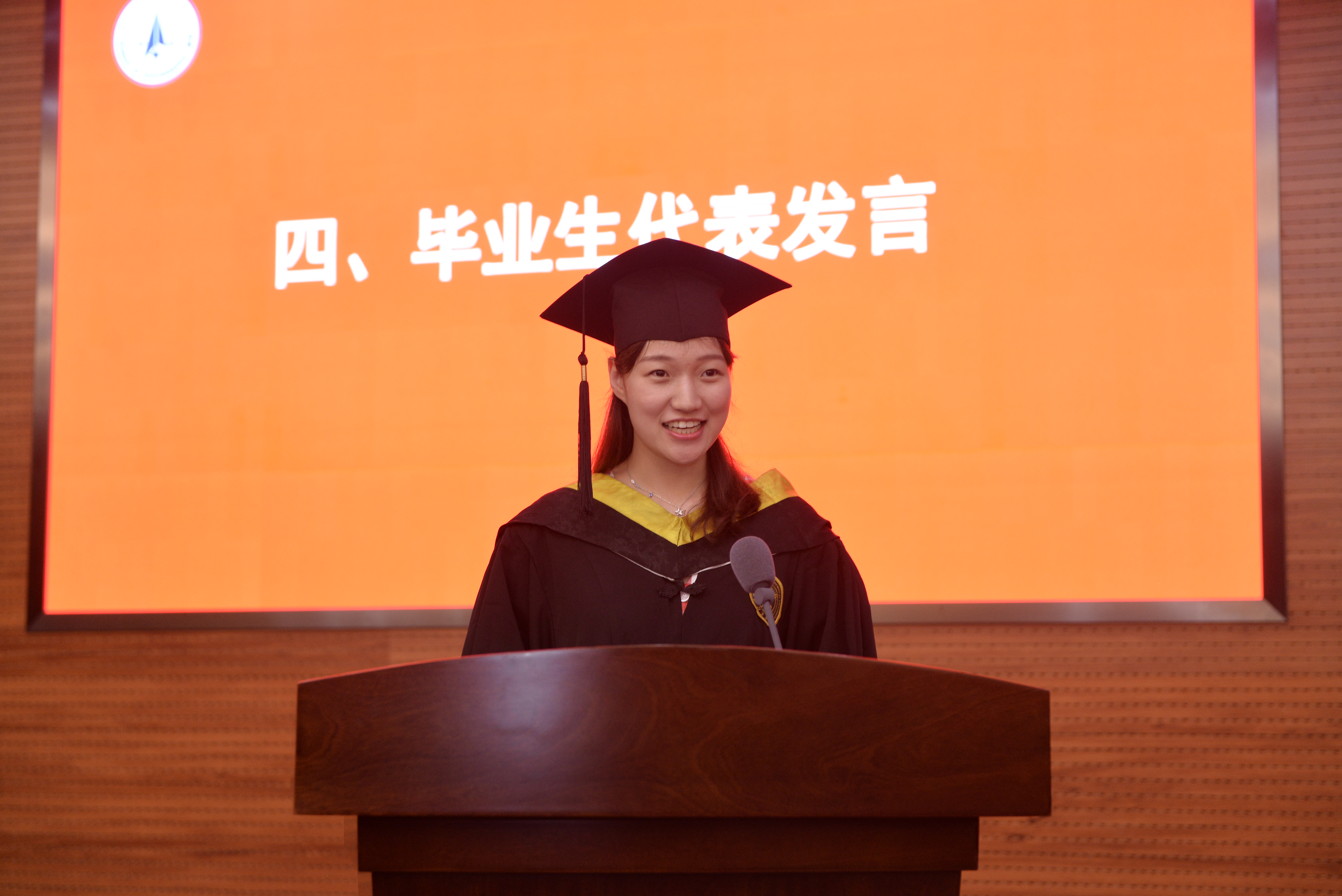毕业生代表马孟奇同学发言,言语中表达了对母校的不舍,又饱含感激之情,立志将“公诚勇毅”的校训和“三实一新”的校风内化于心,外化于行,继续传承和发扬工大精神、航天精神,只争朝夕,不负韶华,星辰大海,一苇以航。接下来带领学院全体毕业生宣誓:胸怀祖国、发愤图强、埋头苦干、永攀高峰,为把我国建设成为世界科技强国、航天强国作出新的更大的贡献。