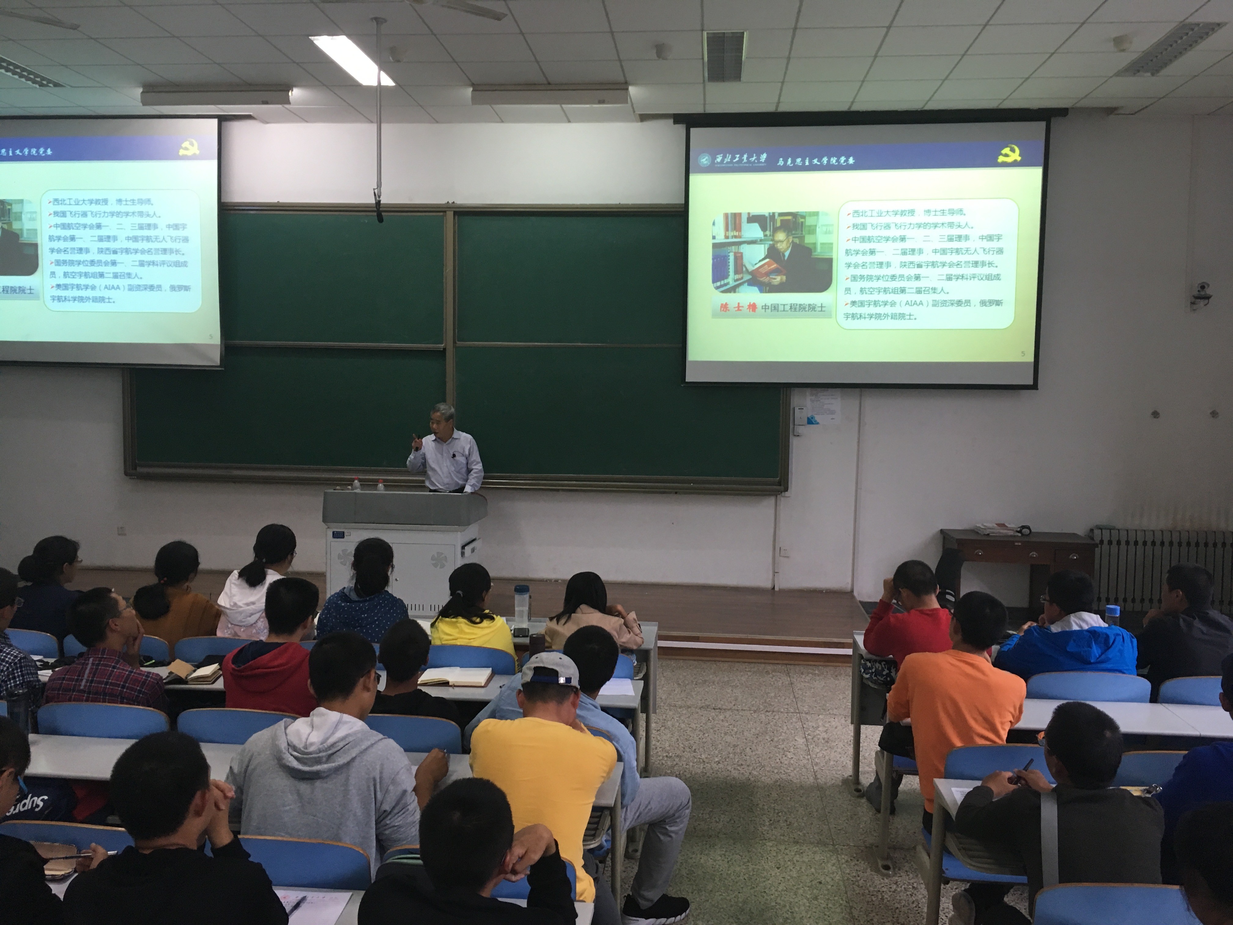接下来,鲁卫平向2018级大一新生讲述了陈士橹院士的求学和执教历程,包括在西南联大、莫斯科航空学院进修的小故事。让同学们充分了解到陈士橹院士勤学苦读、立志航天报国的精神以及在航天领域的地位与影响,并呼吁同学们向陈士橹院士学习。