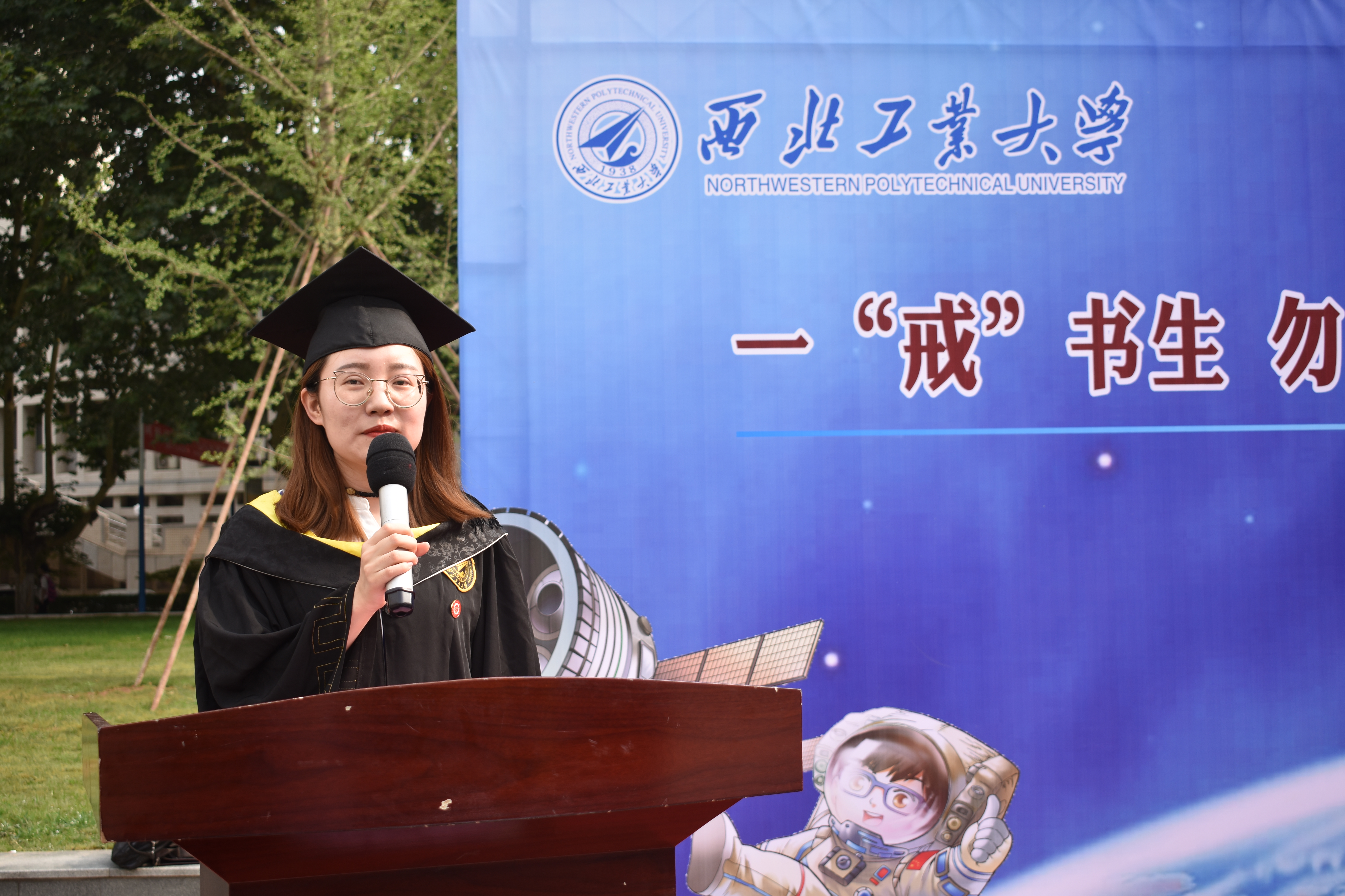 相信未来,同学们一定会记着这几年在澳门网投十大信誉平台的学习与生活,更不会忘记学校、学院教给他们的点点滴滴,“一‘戒’书生、勿忘初心,情定工大、矢志航天”必将铭记于每一位同学的心中,他们的青春年华必在为国家、为人民的奉献中换发出绚丽光彩。