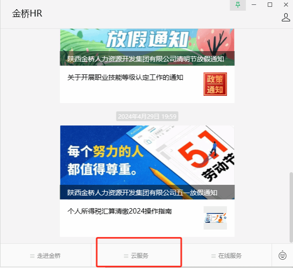 工资相关可关注微信公众号“金桥HR”进行注册查询,具体操作如下:云服务——金桥云服务——SAAS系统——薪酬发放记录